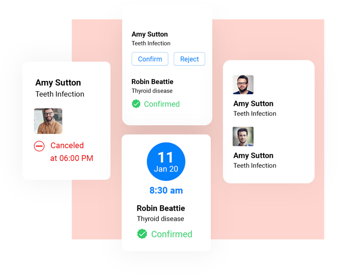 The patient selects an available time slot and books an appointment. The provider gets notified instantly and the patient gets appointment reminders by email and text.